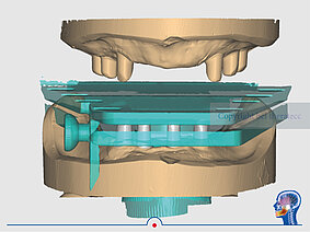 Für eine optimale Lagestabilität wurden im Oberkiefer sechs und im Unterkiefer 4 Implantate inseriert. Nach der Einheilphase erfolgte die Abformung klassisch analog.