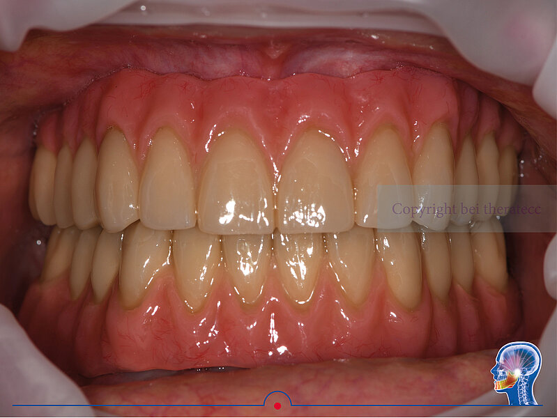 Die zuverlässige Erfassung der Bisslage und der Gesichtsebenen und deren Nutzung für die ästhetische und funktionelle Gestaltung der Versorgungen ist der elementare Vorteil dieses Konzepts. Die Zufriedenheit der Patienten und die Langlebigkeit der Versorgungen bestätigen den Erfolg. Aus Gero prothetischer Sicht ist die leichte Reinigungsfähigkeit der Innenteleskope im Mund ein weiterer Vorteil dieser Teleskopversorgung im Vergleich zu einer Stegversorgung oder auch einer festsitzenden Lösung.